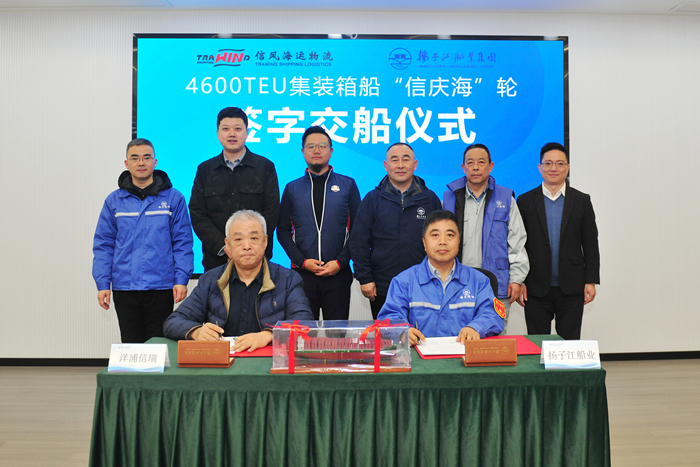 隨著“信慶?!陛喌慕桓?,我集團為信風海運建造的兩艘4600TEU系列集裝箱船項目順利收官。交船儀式上雙方喜悅地回顧了合作歷程,表示通過此次項目的成功合作,雙方不僅實現了既定目標,還進一步加深了互信和理解。展望未來,雙方一致認為,將繼續(xù)保持密切溝通,關注行業(yè)發(fā)展動向,把握發(fā)展機遇,并在未來合適的時機尋求更多合作機會,共同推動雙方業(yè)務的進一步發(fā)展與共贏。