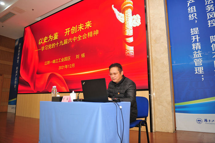 為深入學(xué)習(xí)宣傳貫徹黨的十九屆六中全會精神,12月29日下午,公司特邀江陰市委宣講團成員、園區(qū)黨委委員、紀委書記劉銘來司進行黨的十九屆六中全會精神宣講。