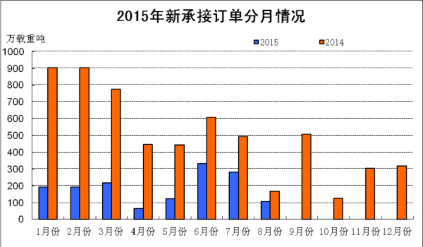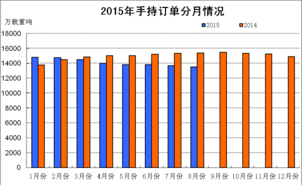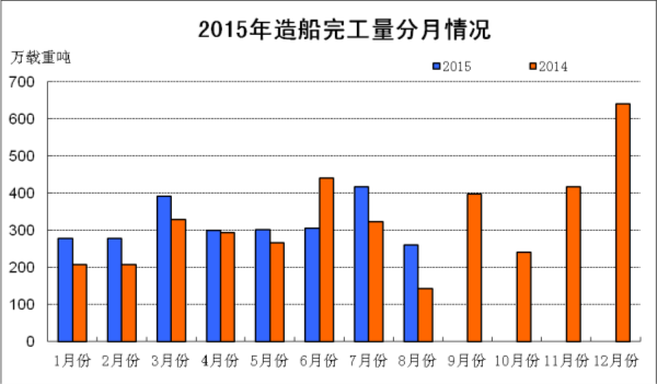 2015年1~8月,船舶工業(yè)經(jīng)濟(jì)運(yùn)行總體保持平穩(wěn),造船完工量同比增長(zhǎng),受?chē)?guó)際船舶市場(chǎng)低迷的影響,新承接船舶訂單、手持船舶訂單同比下降,新船價(jià)格低位震蕩,企業(yè)經(jīng)濟(jì)效益略有下降。